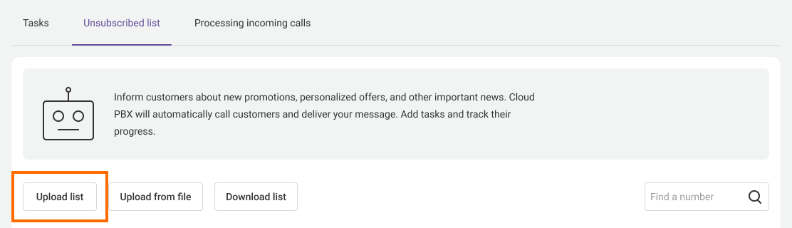 13. If you want Cloud PBX not to call some customers from the uploaded AVM list, add exceptions. You can set up how to handle the unsubscribed list within a task.
