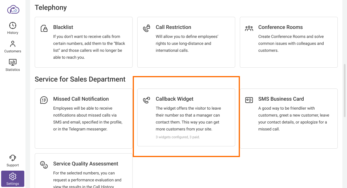 You can request a call back from the website only to a cell phone number of your country’s telecom operator. If you have added a subscriber's number to the black list, they will not be able to call you, even if they request a call back through the widget on the website — Cloud PBX won’t let unwanted calls through.