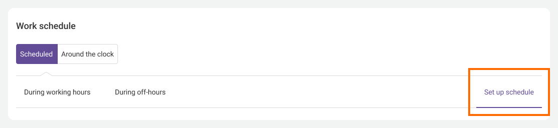 - If you want to add a unique work schedule (for example, taking into account an operational calendar) or additional modes (lunch break, working during off-hours, etc.), you can do this using a flexible schedule setup.