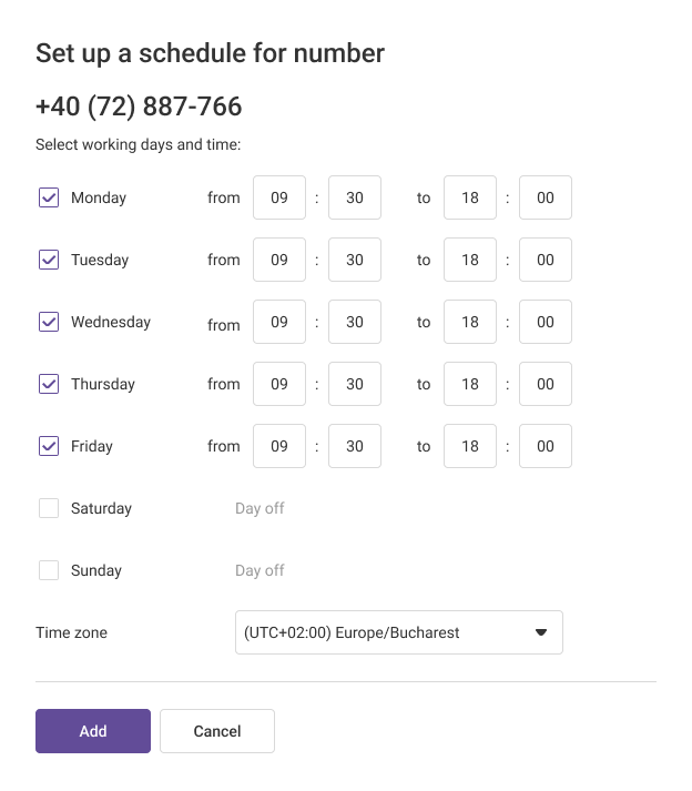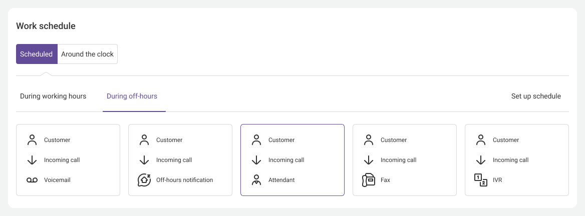 Here, you can set up a call-receiving schedule during working hours and choose where to forward calls during off-hours.