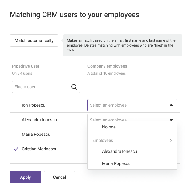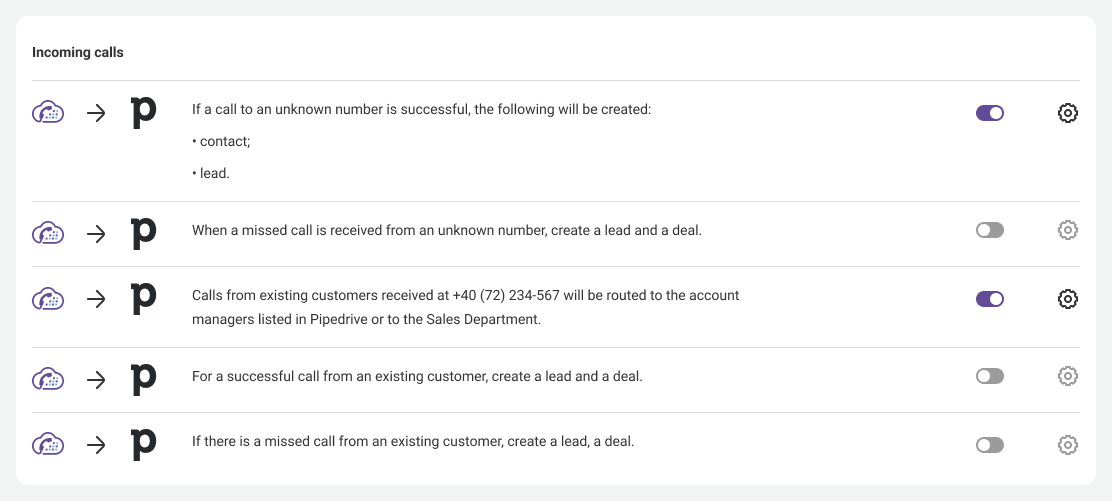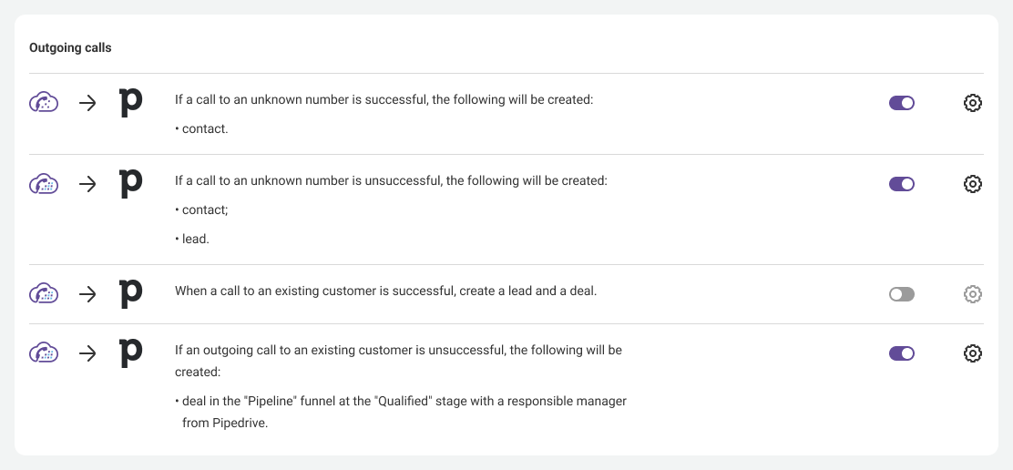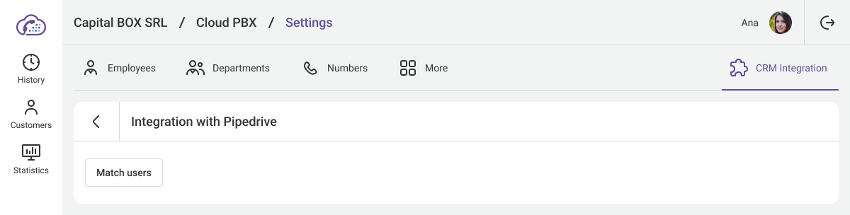 If you add new employees in the future, don’t forget to match their Cloud PBX and Pipedrive profiles in the integration settings in the Cloud PBX interface.