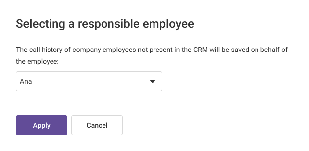 You can set up what to do with the call history of the Cloud PBX employees who are not added to Pipedrive. You can save their call history on behalf of any matched user.