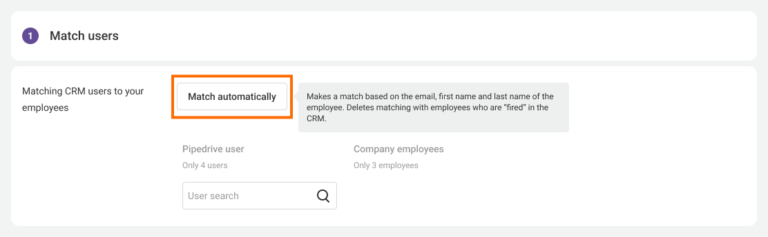 In the Pipedrive integration settings in Cloud PBX, go to the Match users section.
