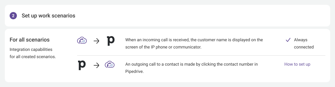 Once you have set up all the necessary scenarios, start using the Pipedrive and Cloud PBX Integration.