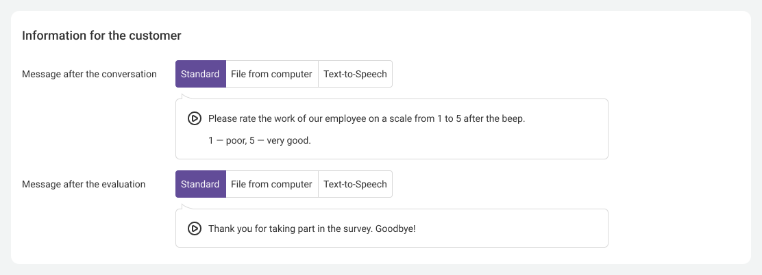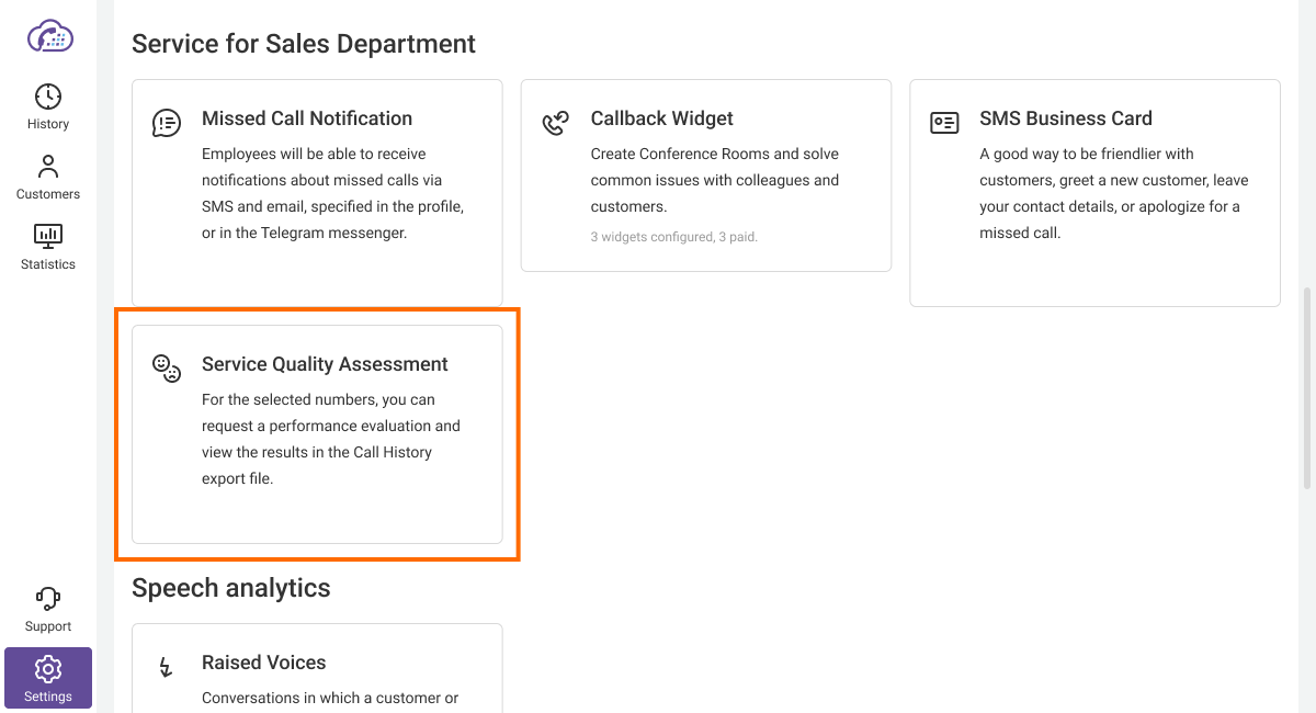 You can configure a quality assessment after each call and then review the collected data in the History section. You will listen to the recordings of problematic calls and comprehend the concerns your customers have expressed.
