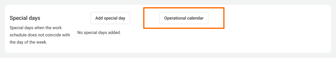 1.In the number schedule settings go to the Special Days section and click the Operational Calendar button.