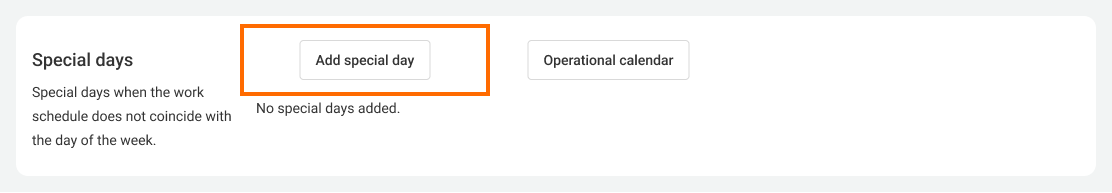 1. In the number schedule settings, go to the Special days section and click the Add special day button.