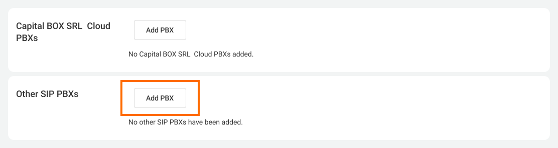2. Click Add PBX next to the Other SIP PBXs option.