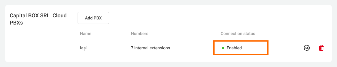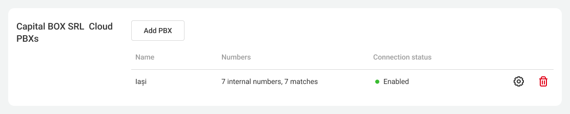 • Name. It's the name of the PBX you want to add. You can enter the name of the branch or city for convenience.